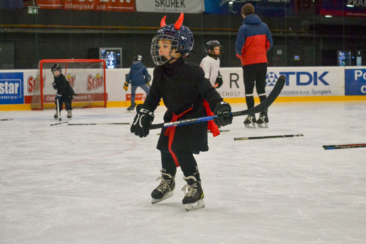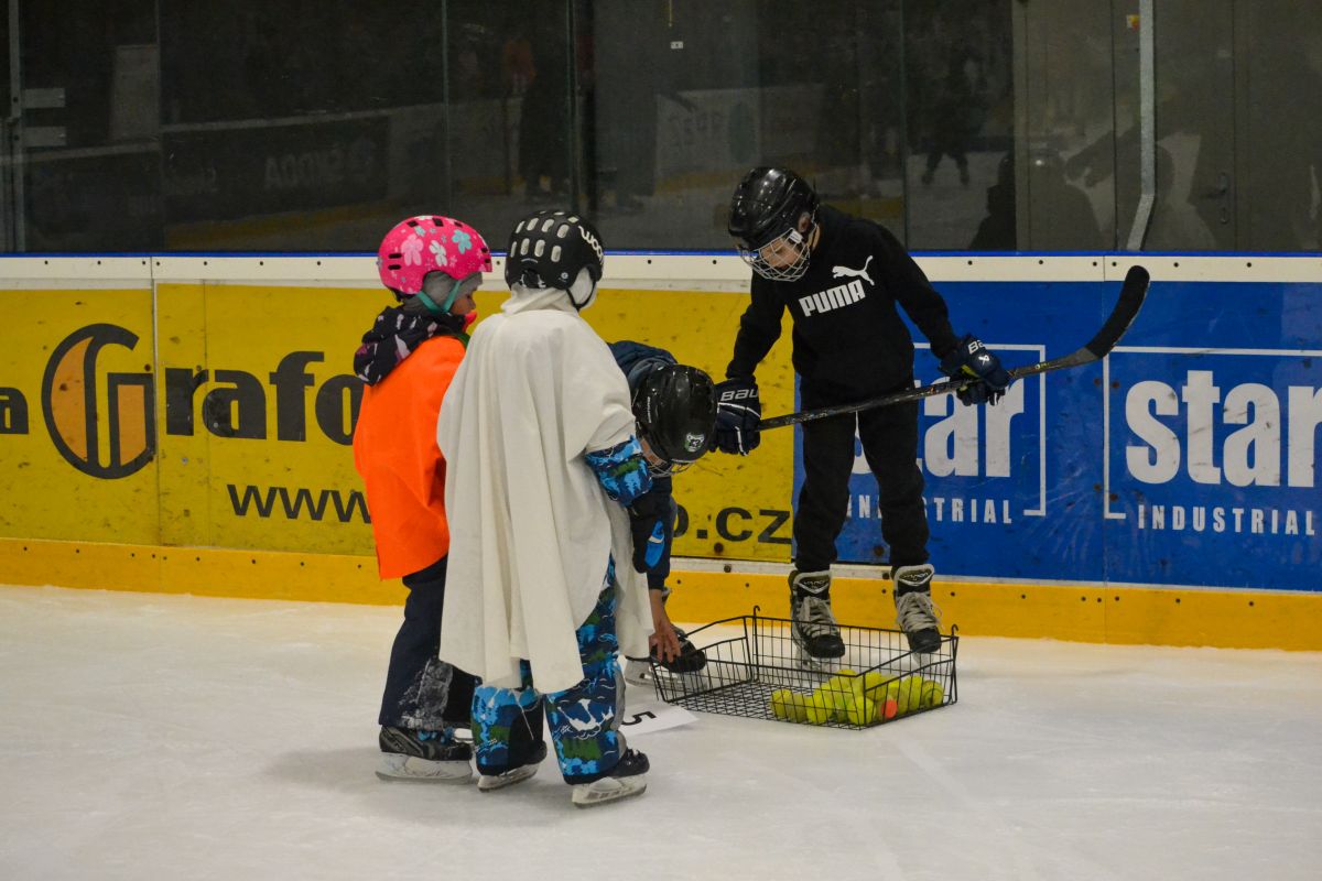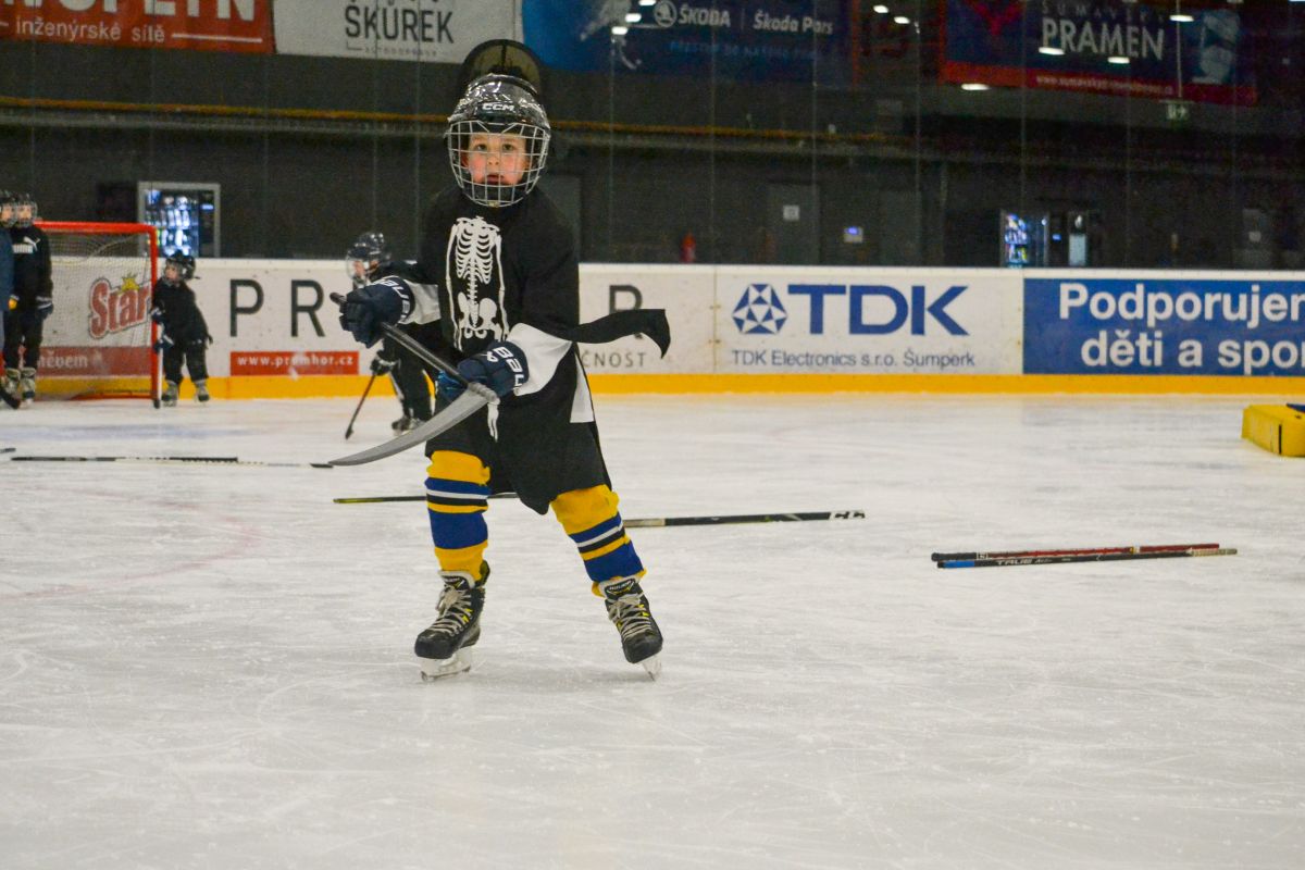Halloween na ledě nebyl určen jen nejmenším bruslařům. Zúčastnily se i děti z 1. a 2. třídy, které akci pojaly jako netradiční trénink a formu team buildingu. Pro starší děti to byla skvělá příležitost zažít společný sportovní program jinak než jen v podobě běžné tréninkové jednotky.