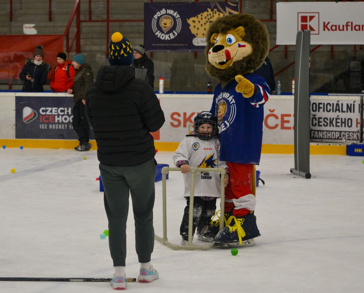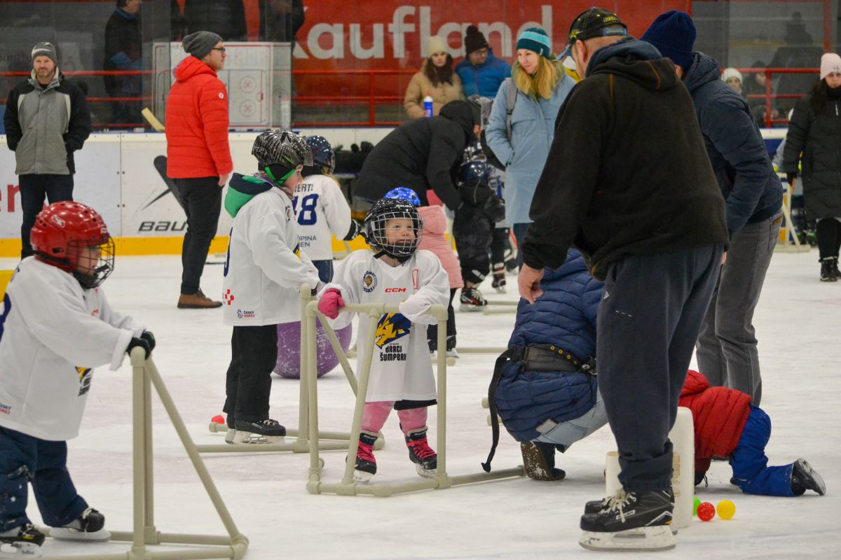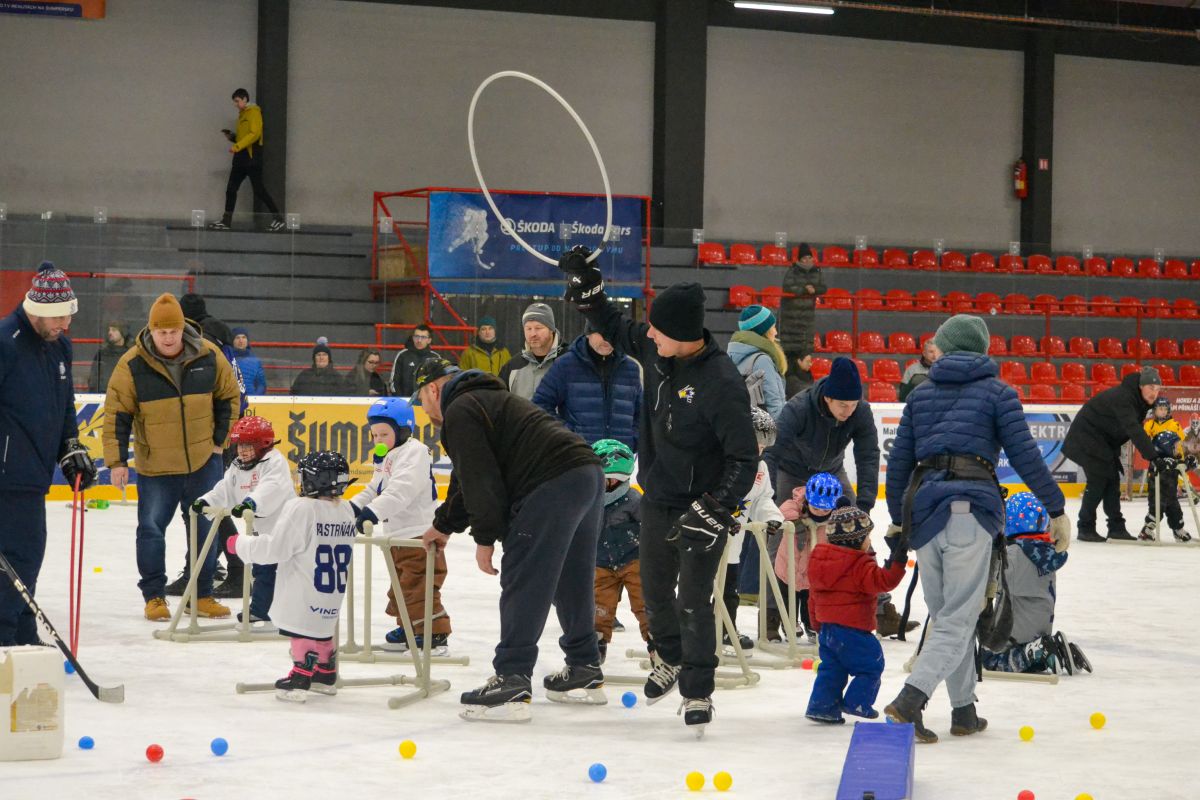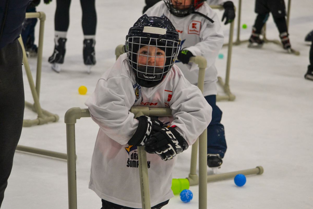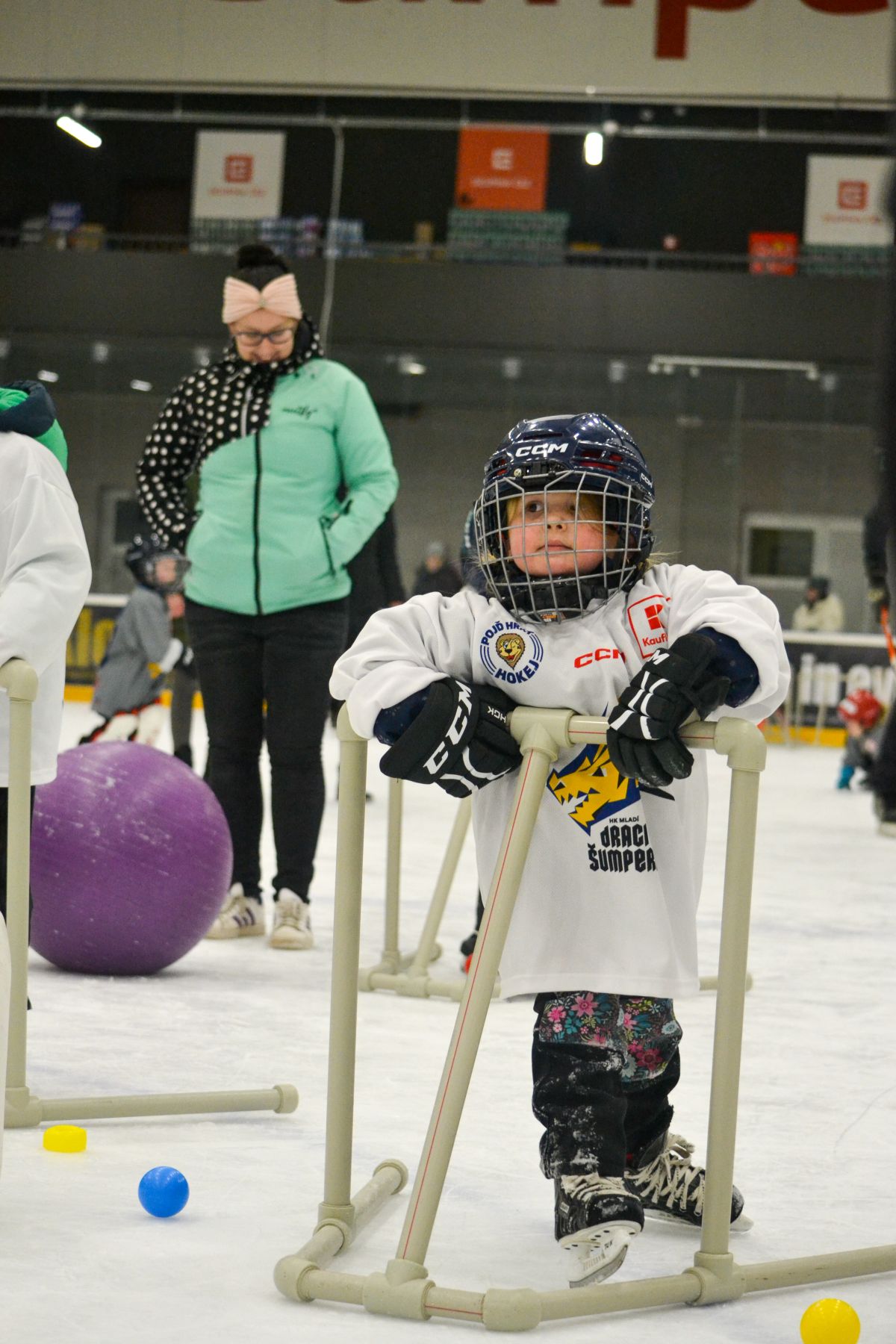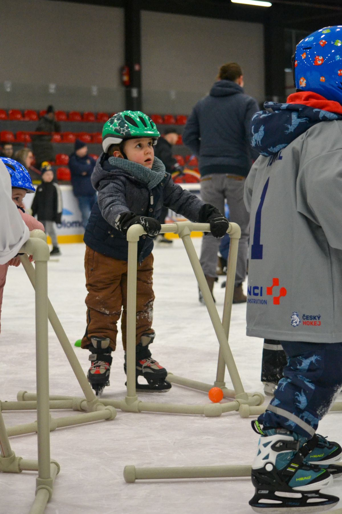Po prezentaci se děti spolu s trenéry přesunuly do šatny, kde se připravily na své první kroky na ledě. Na ploše mezitím probíhal trénink nejmladší kategorie, který rodičům přiblížil, jak běžná tréninková jednotka probíhá. Pro nově příchozí byla připravena stanoviště různé obtížnosti podle věku a zkušeností s bruslením. Nejmenší se učili základní postoj na bruslích a techniku vstávání z ledu, zdatnější účastníci se zdokonalovali v jednotlivých dovednostech a zapojovali se do her, které hravou formou rozvíjely stabilitu, koordinaci, techniku i výbušnost.