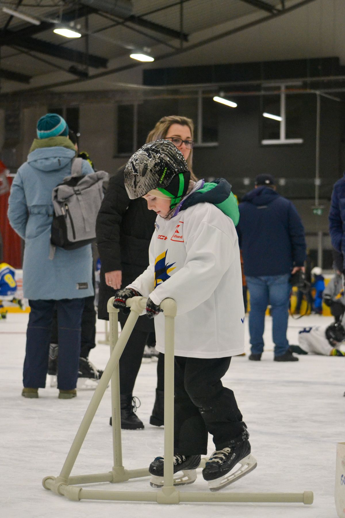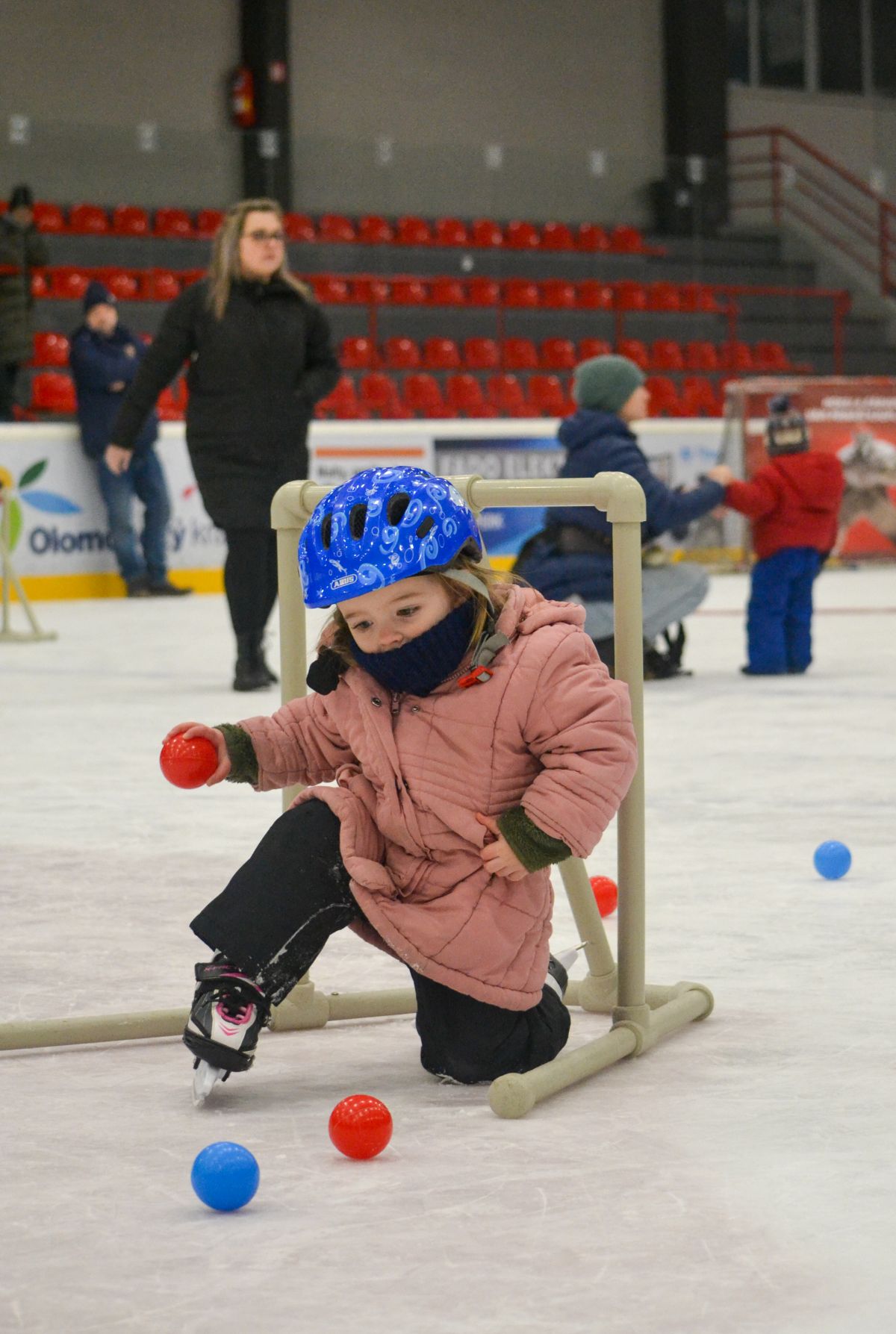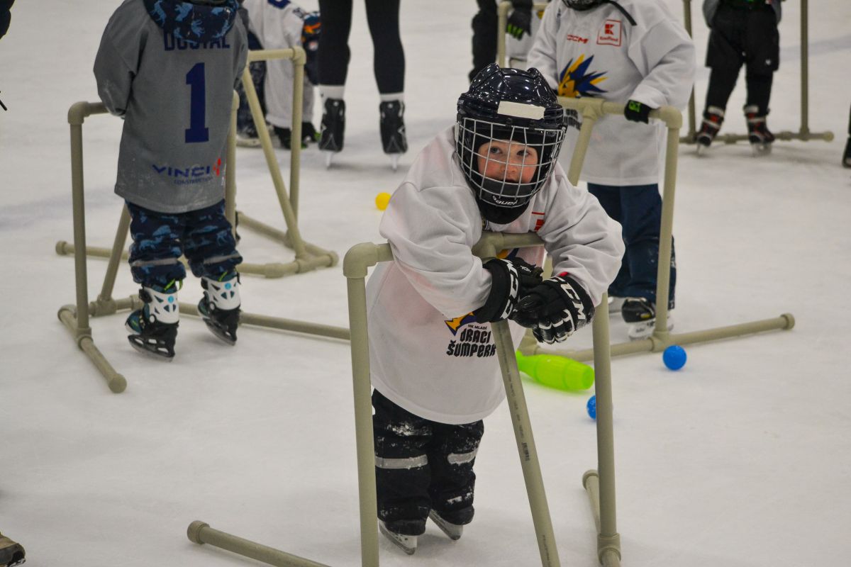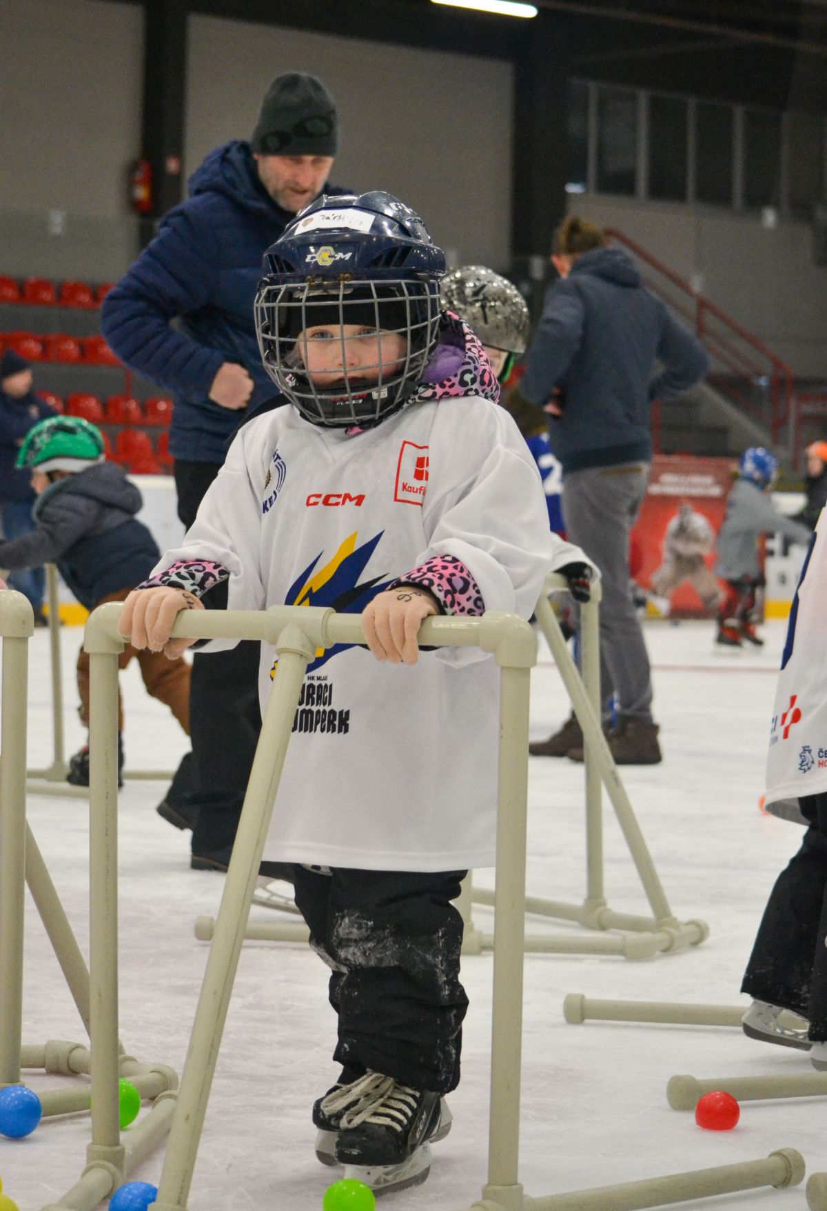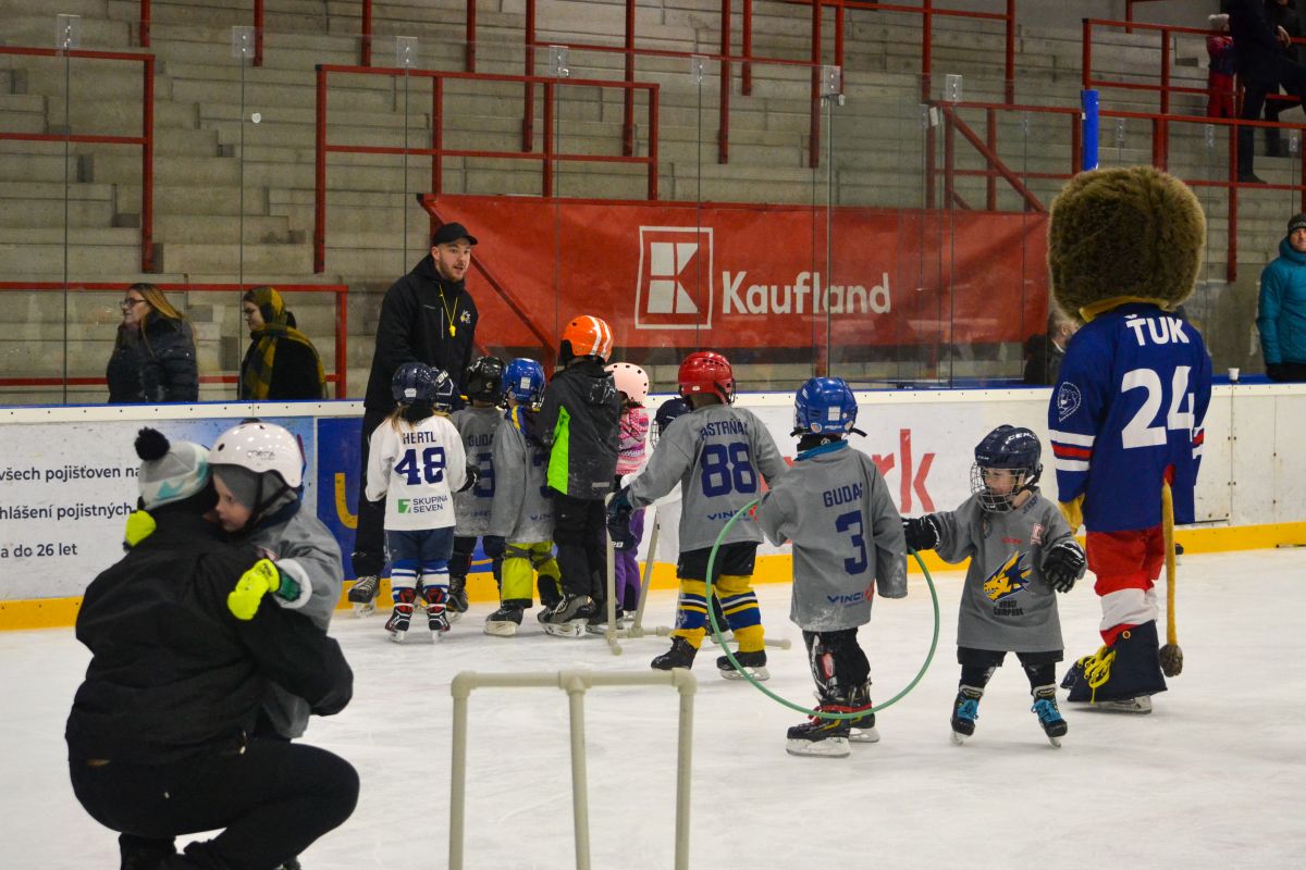 Po prezentaci se děti spolu s trenéry přesunuly do šatny, kde se připravily na své první kroky na ledě. Na ploše mezitím probíhal trénink nejmladší kategorie, který rodičům přiblížil, jak běžná tréninková jednotka probíhá. Pro nově příchozí byla připravena stanoviště různé obtížnosti podle věku a zkušeností s bruslením. Nejmenší se učili základní postoj na bruslích a techniku vstávání z ledu, zdatnější účastníci se zdokonalovali v jednotlivých dovednostech a zapojovali se do her, které hravou formou rozvíjely stabilitu, koordinaci, techniku i výbušnost.
