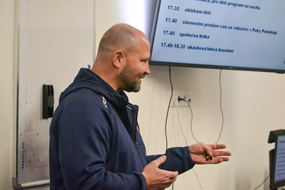 Následovala prezentace oddílu, kterou vedl trenér nejmenších ročníků – Školičky bruslení, přípravky a 1. a 2. třídy – Radomír Čížek. Rodiče během ní získali stručný, ale ucelený přehled o fungování hokejového klubu HK Mladí Draci Šumperk, od každodenní organizace tréninkového procesu až po dlouhodobou koncepci práce s mládeží. Zároveň jim byly představeny možnosti zapojení dětí do hokejové přípravky, případně účast v kurzech bruslení a pohybové přípravě v průběhu jarních a letních měsíců.