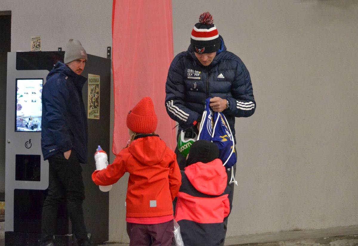 Po registraci se děti společně s trenéry přesunuly na krátké zapracování mimo led, kde si vyzkoušely jednoduchá pohybová a obratnostní cvičení. Tato část programu probíhala v nových prostorách multifunkční posilovny, kde se malým účastníkům věnoval trenér dorostu a zároveň hráč A-týmu Tomáš Pospíšil.