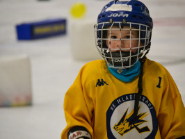 Ihned po prezentaci se děti za pomocí trenérů a vedoucích HK MD Šumperk přesunuly do šatny, kde se nachystaly na své první krůčky na ledě. Během oblékání se na ledě pod dohledem trenérů odehrávalo modelové utkání přípravky a v plném proudu byla i školička bruslení. Pro zcela nové děti byla ve vymezeném území nachystaná tři stanoviště, která si děti průběžně prošly a seznámily se zábavnou formou s prostředím na ledě. Po ukázce základního postoje a vstávání z ledu nechyběly pro děti, které již zvládly pohyb na bruslích bez opory překážková dráha a pohybové hry. Děti program bavil a bylo vidět, že si jej velmi užívají. Důkazem toho byly zářivé úsměvy účastníků na celé ploše Škoda arény.