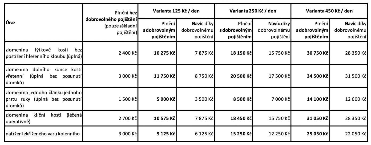 Vyšší plnění – krytí i u méně závažných úrazů (např. zlomeniny)
