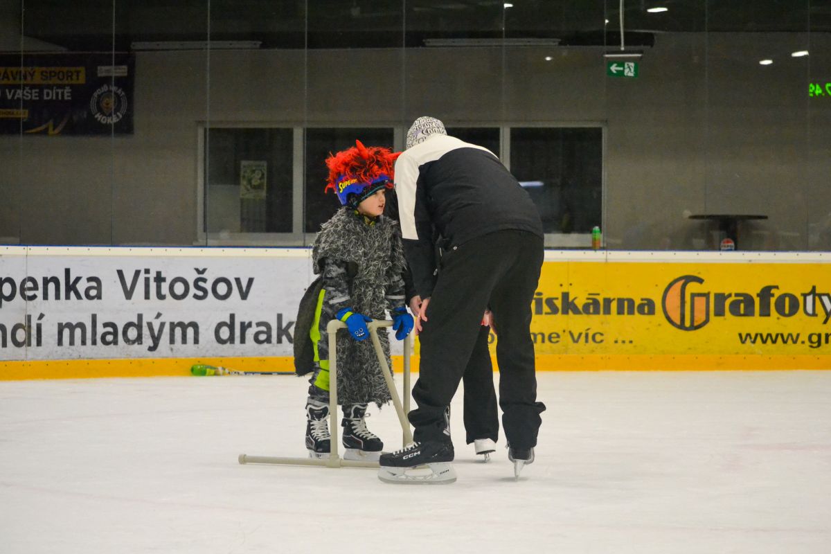 Čertovský mejdan na ledě byl jednou z tradičních akcí Školičky bruslení. Program pro nejmenší tím ale nekončí – ještě před Vánoci klub chystá také bruslařský Disco karneval, jehož termín bude včas zveřejněn.